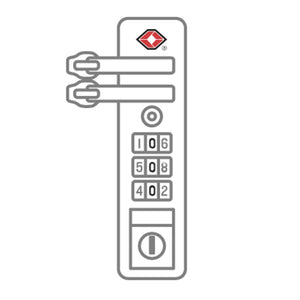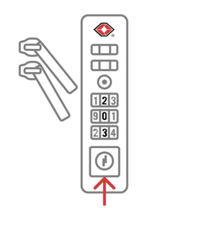 Remove the zipper-pullers from the lock by pushing up on the arrow/release button