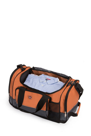 Engineered for versatility and velocity, the Swissgear 9000 20” Apex Duffel bag is a necessity. Made from 100% polyester, its rugged construct features a spacious main compartment, two large zip pockets, and a front pocket. Stuff your workout clothes, travel gear, and toiletries inside its interior and stay hydrated as your canteen rests inside a mesh water bottle pocket.