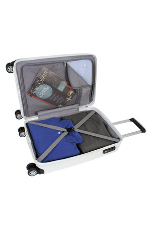 Travel in style with the Swissgear 6191 19.5" Carry On Hardside Spinner Luggage Collection. This luggage features lightweight construction and maneuverability allowing you to travel hassle-free. Constructed from textured polypropylene, this luggage comes equipped with a lightweight aluminum locking push/pull handle and eight 360-degree spinner wheels.